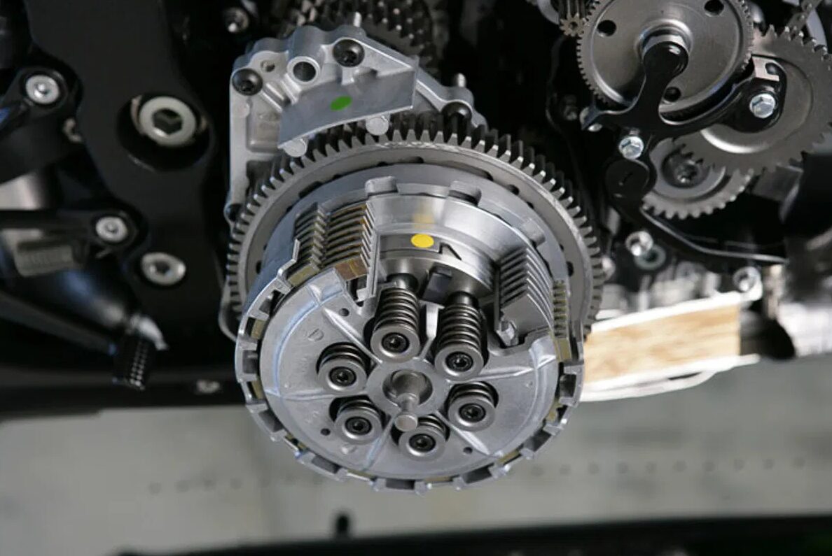 Το μυστικό είναι στις ράμπες του συμπλέκτη. Ο slipper clutch έχει ειδικές γωνίες που, όταν το μοτέρ σπρώχνει αντίθετα, σπρώχνουν το πακέτο δίσκων να ανοίξει ελεγχόμενα. Αυτό σημαίνει ότι ακόμα και μια άτσαλη κατεβασιά σε πίστα ή δρόμο δεν προκαλεί χάος πίσω. Το λάστιχο παραμένει ομαλό, η μοτοσυκλέτα κρατά γραμμή και ο αναβάτης έχει την αυτοπεποίθηση να φρενάρει αργότερα και να κατεβάζει πιο επιθετικά.