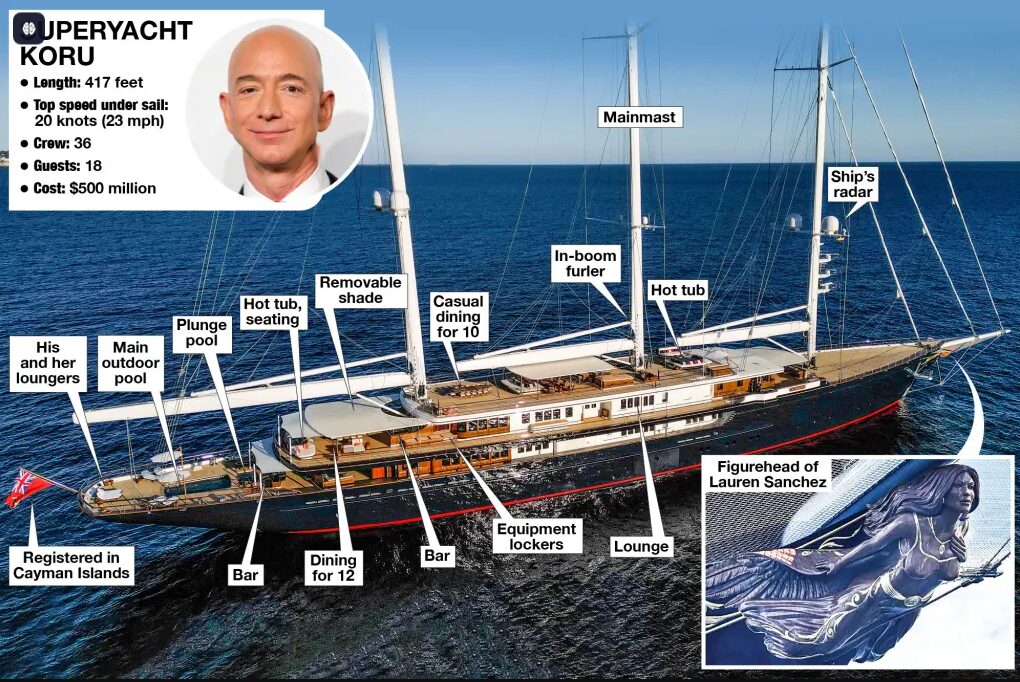 Το Koru δεν είναι απλώς ένα υπερ-γιοτ. Είναι πλωτό παλάτι, party machine, συμβολισμός δύναμης  και φωλιά gossip. Κάθε φορά που εθεάθη στους ρηχούς κόλπους του βασιλιάς-επιχειρηματία Jeff Bezos συνοδεύεται από flash φωτογράφων και στιγματίζει τη showbiz: «Αυτοί οι διάσημοι μπαίνουν με στυλ».