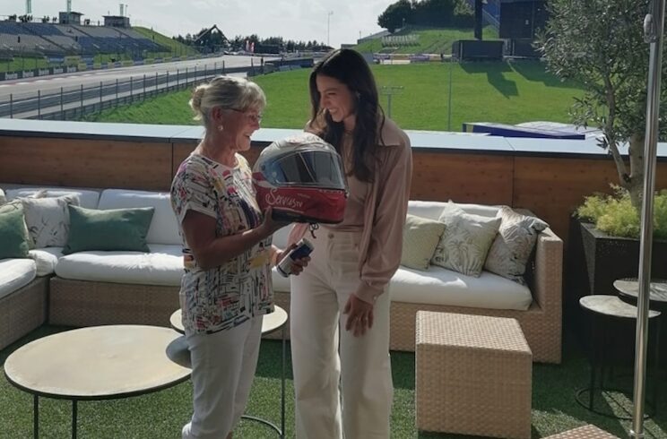 Οκτώ μήνες αργότερα, η προσμονή κορυφώθηκε στο Spielberg. Στην ταράτσα του Red Bull Holzhaus, με φόντο τις αυστριακές Άλπεις και τις ιαχές των φιλάθλων, η παρουσιάστρια του ServusTV, Alina Marzi, παρέδωσε το κράνος στη Simone.
